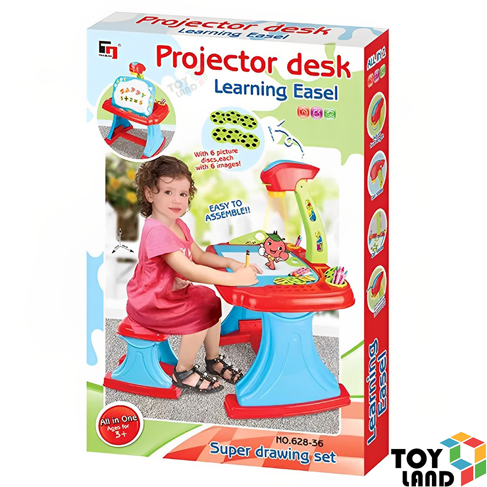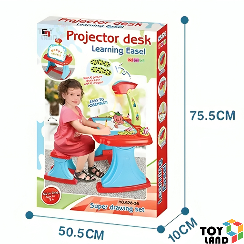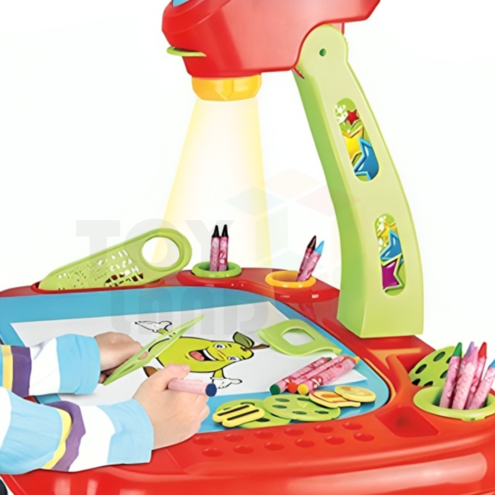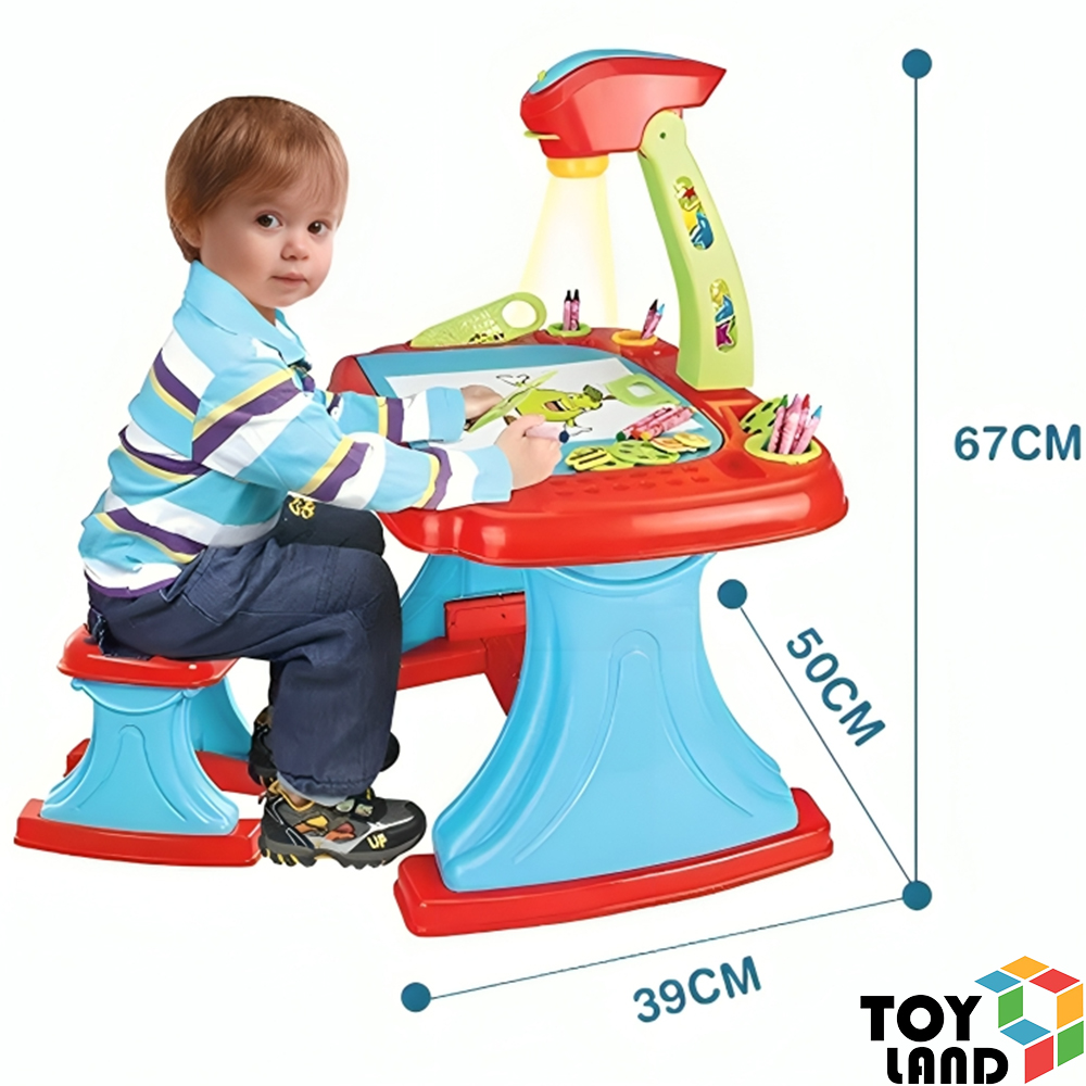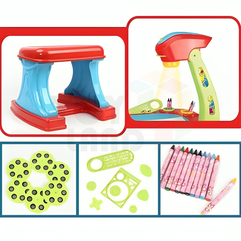 مكتب عرض ضوئي للأطفال مزود بجهاز بروجكتور يساعدهم على تعلم الرسم بسهولة، مع مقعد مريح وأدوات تلوين ممتعة لتنمية الإبداع والخيال وتشجيع حب الفن منذ الصغر. 🎨✨