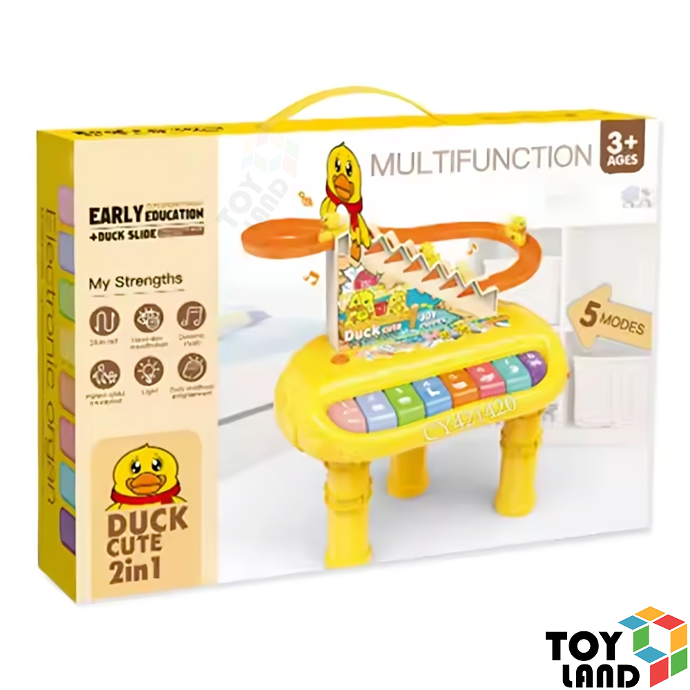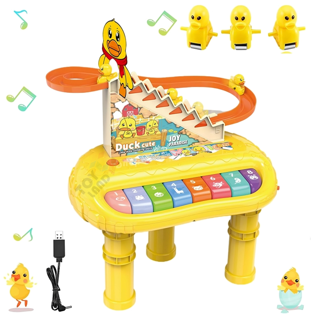 لعبة بيانو متعددة الوظائف مع سكة بط صغير متحرك، تجمع بين الموسيقى والمرح لتنمية المهارات الحركية والسمعية والإبداعية للأطفال، وتوفر تجربة لعب تفاعلية ممتعة مليئة بالضحك والاكتشاف. 🎹🦆✨
