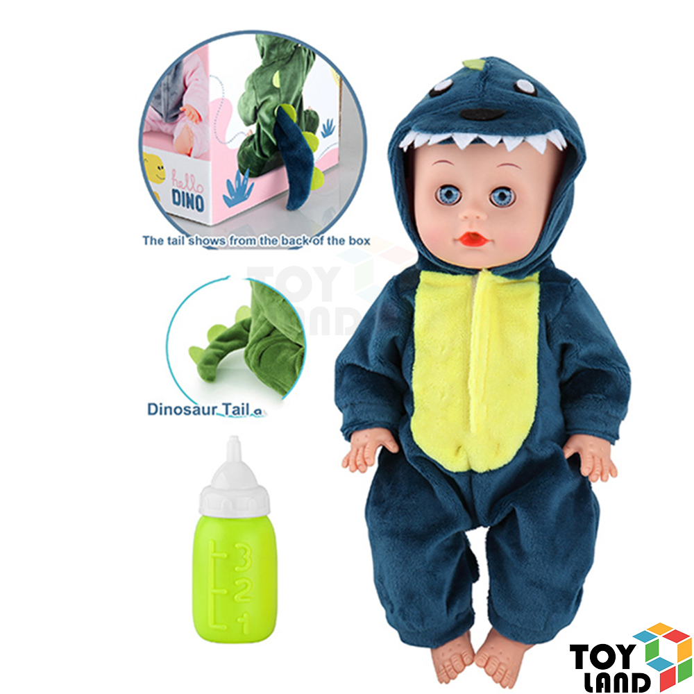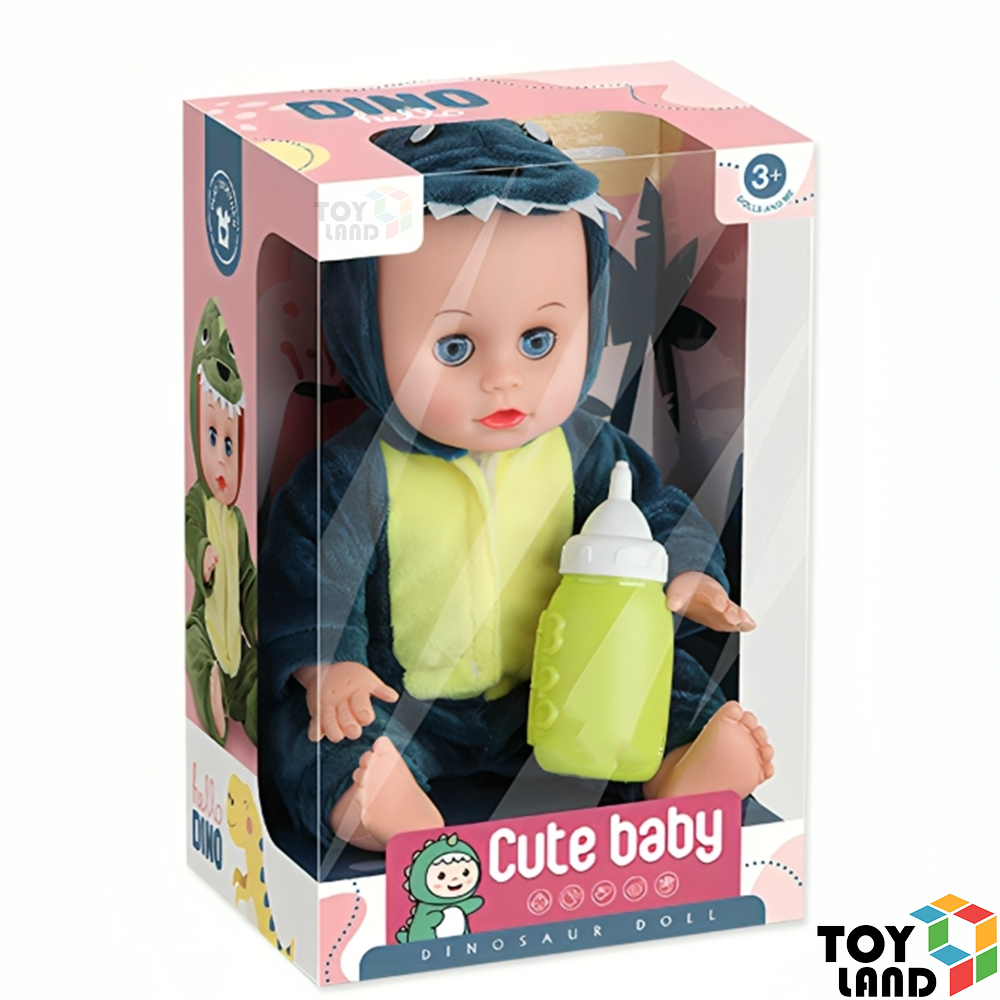 عروسة بيبي لطيفة بزي ديناصور ملون مع زجاجة رضاعة، تمنح الأطفال تجربة لعب مليئة بالمرح وتنمي لديهم روح الاهتمام والرعاية. 🍼🦖