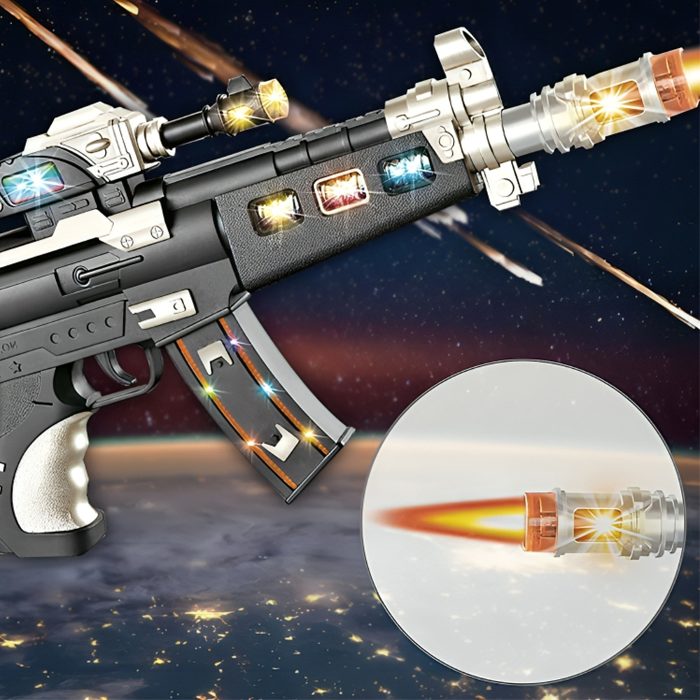 بندقية ألعاب للأطفال بتصميم عصري ومجهزة بأضواء وصوت ممتع، تمنح تجربة لعب مثيرة وآمنة وتعزز خيال الأطفال وتسلية ممتعة لساعات طويلة.