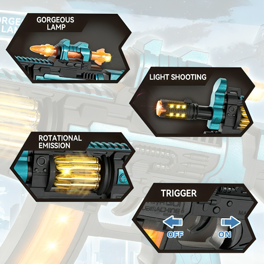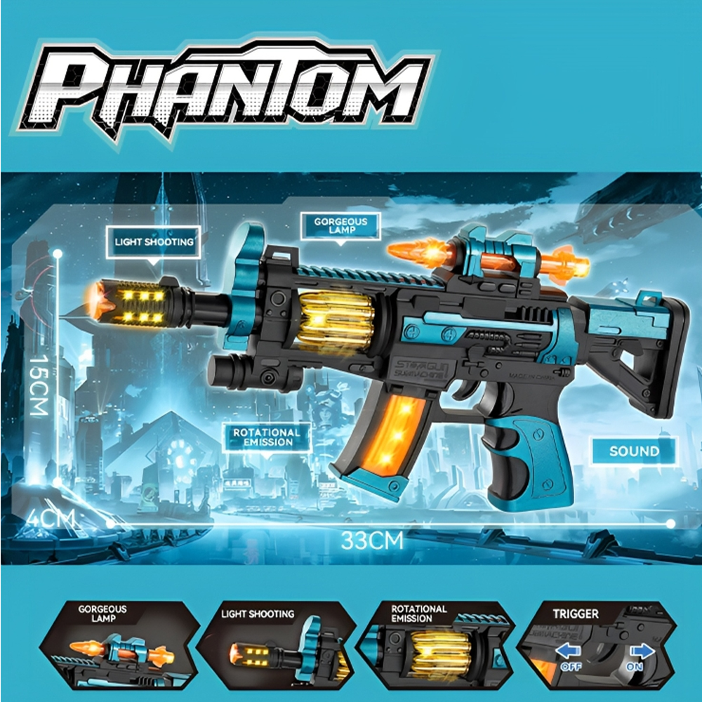 بندقية ألعاب للأطفال بتصميم عصري ومجهزة بأضواء وصوت ممتع، تمنح تجربة لعب مثيرة وآمنة وتعزز خيال الأطفال وتسلية ممتعة لساعات طويلة.