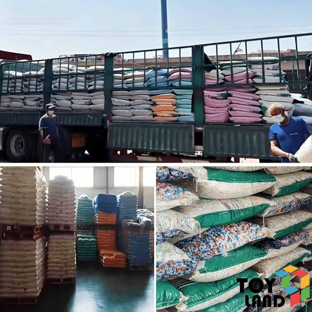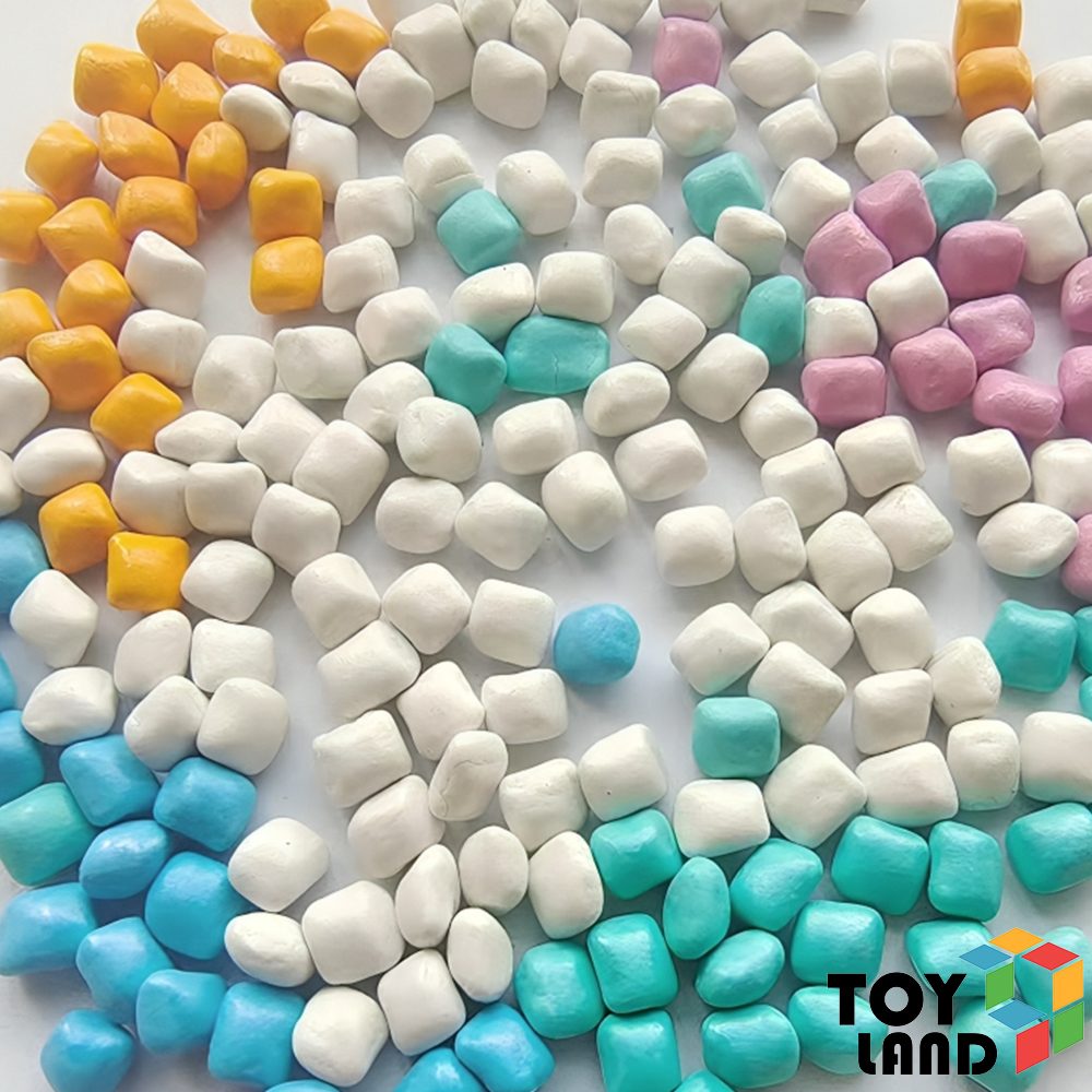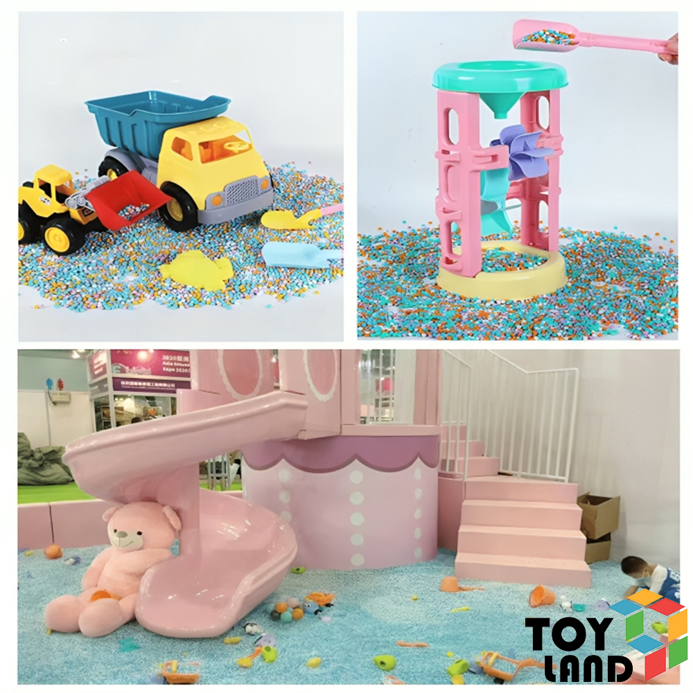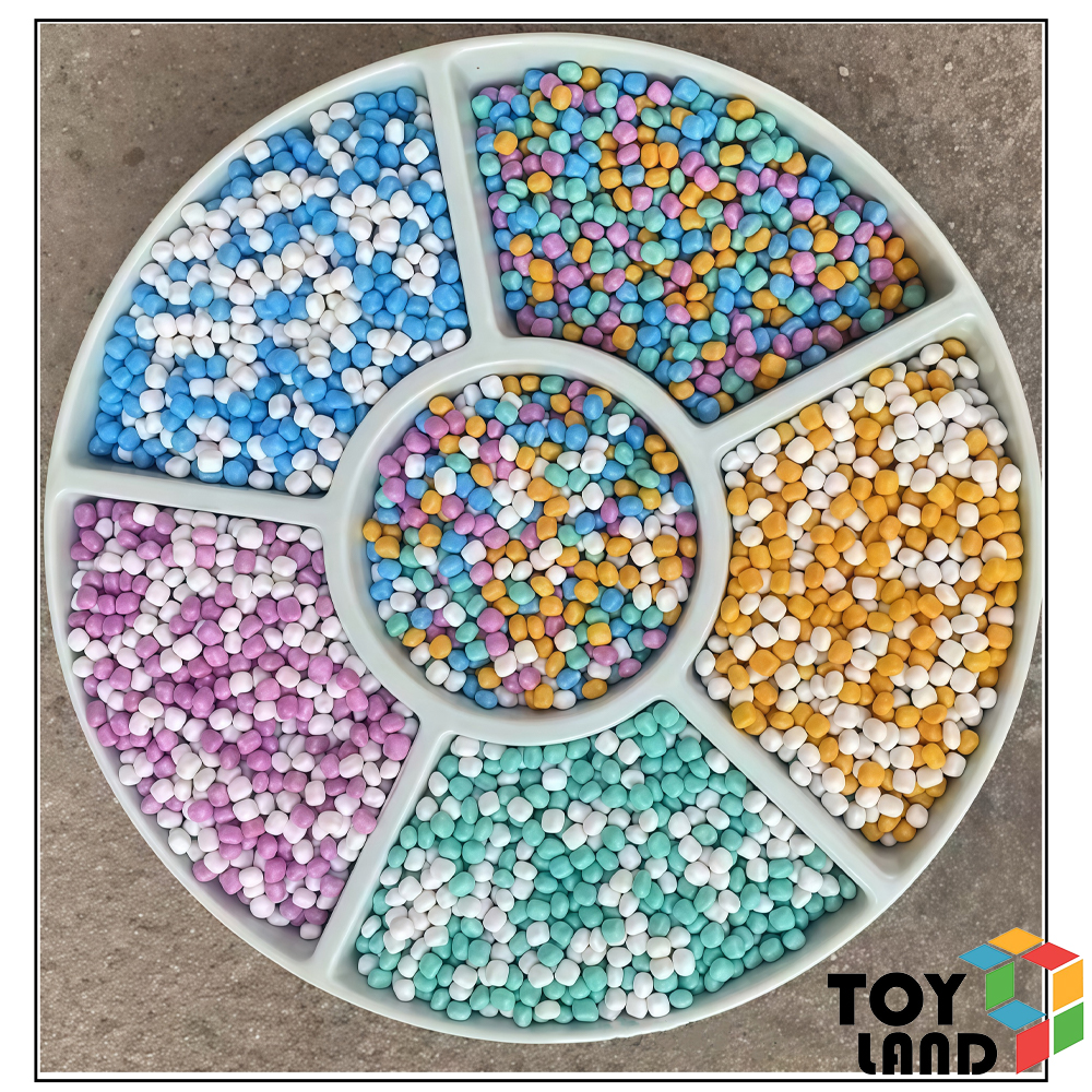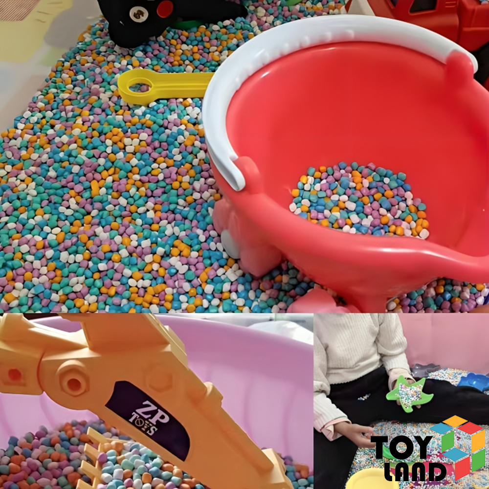 جزيئات رمل تقليد البورسلين الملونة – قابلة للغسل – تُستخدم في قلعة اللعب المرحة أو بركة الرمل الملوّنة.