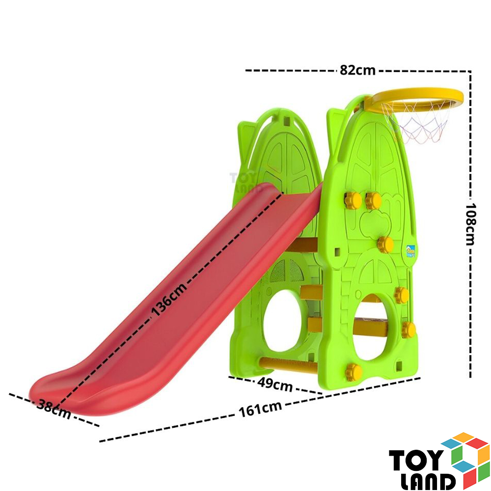 زحلاقيه أطفال مميزة بتصميم آمن وملون، مزودة بسلم صعود وحلقات جانبية للعب، بالإضافة إلى حلقة كرة سلة لزيادة المرح والتفاعل. 🎉🏀