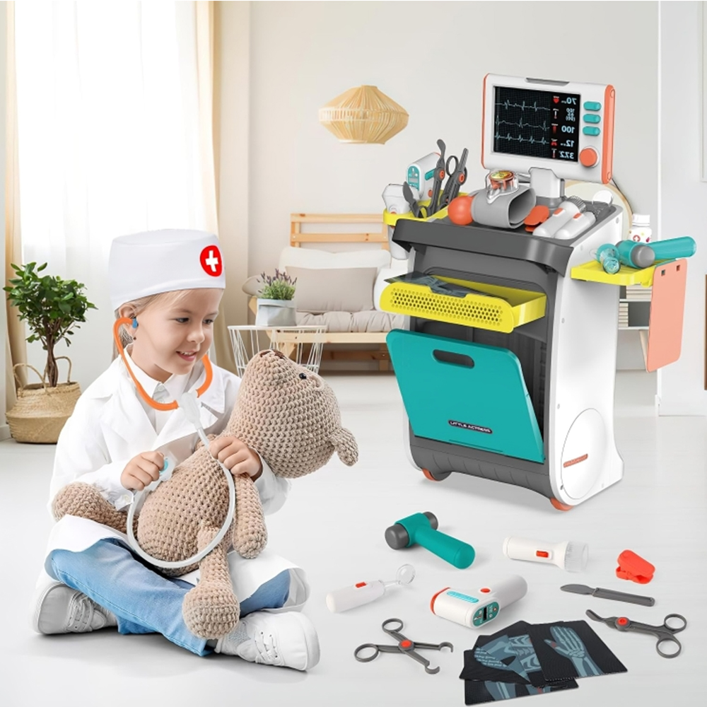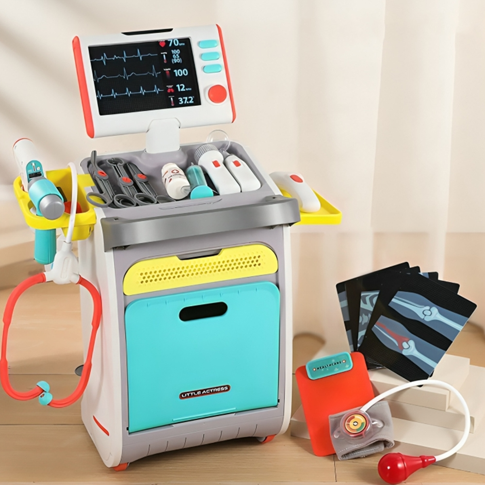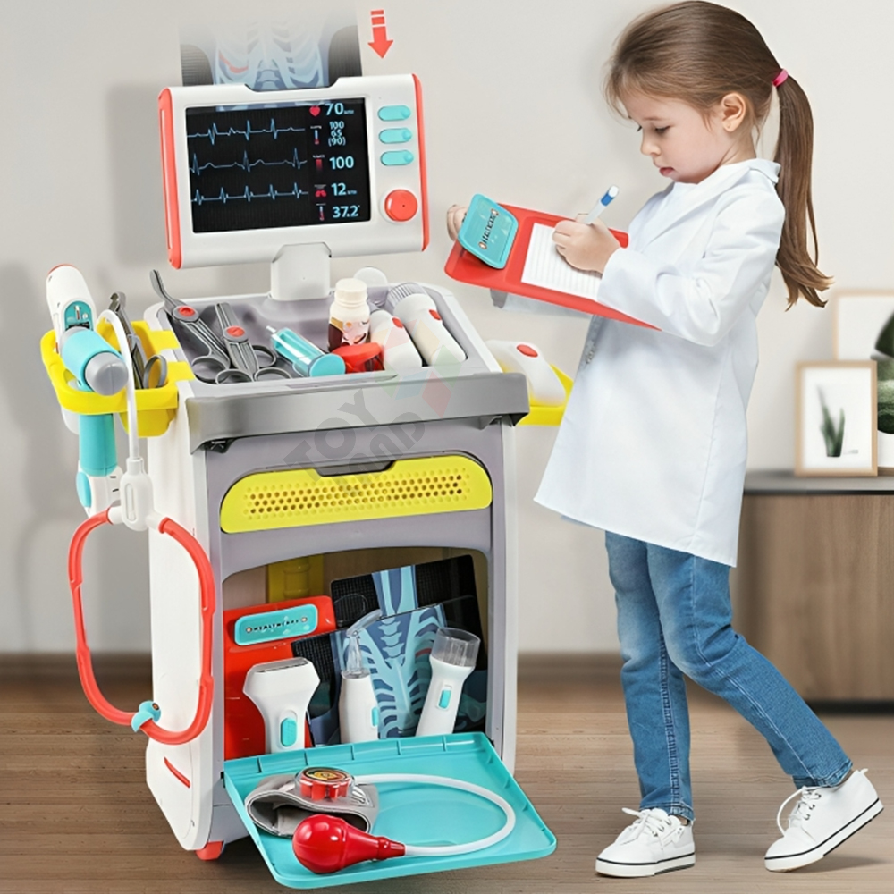طاولة طبية تعليمية للأطفال مزودة بأدوات فحص متنوعة وشاشة مراقبة لتجربة لعب ممتعة تساعدهم على تنمية الخيال والتعرف على دور الطبيب. 🩺✨