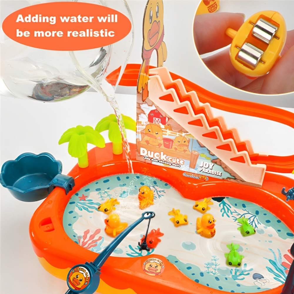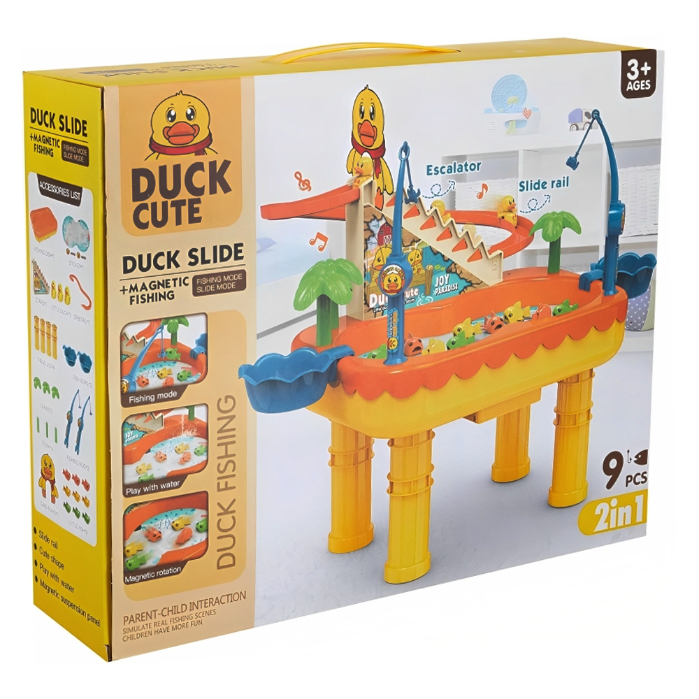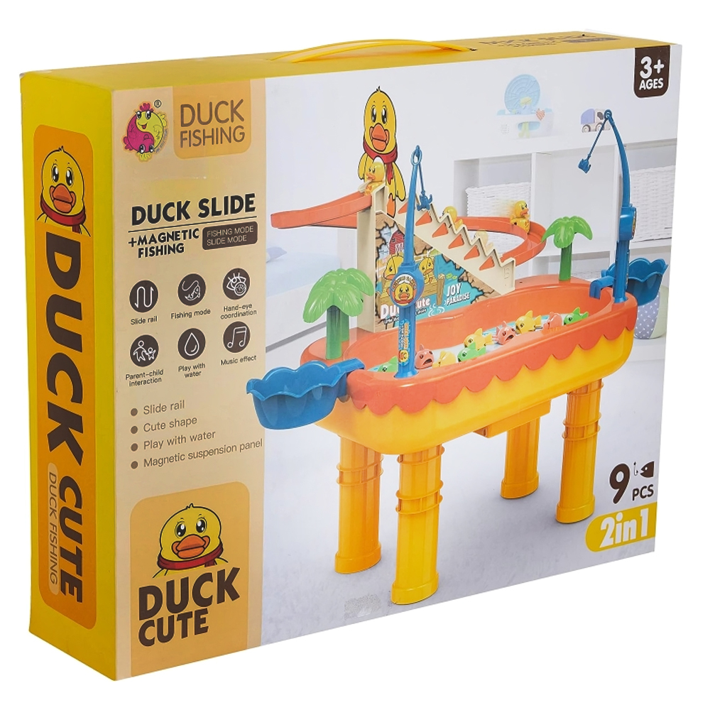 طاولة صيد البط هي لعبة ممتعة وتعليمية للأطفال والعائلة. تتضمن اللعبة طاولة مصممة خصيصًا مع أدوات الصيد الملونة والبط الصغيرة المصنوعة من البلاستيك. يمكن للأطفال استخدام أدوات الصيد لاصطياد البط وتحديد المهارات الحركية والتنسيق بين العين واليد. هذه اللعبة تشجع على المنافسة الصديقة وتعزز التفاعل الاجتماعي.