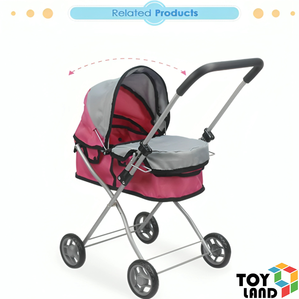 عربانة عروسة أنيقة بتصميم واقعي وألوان جذابة. مصنوعة من خامات خفيفة وآمنة، مع غطاء متحرك وهيكل معدني متين. مثالية للبنات اللي بيحبوا يلعبوا دور الأم.