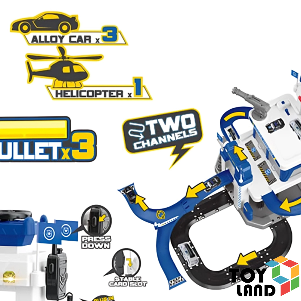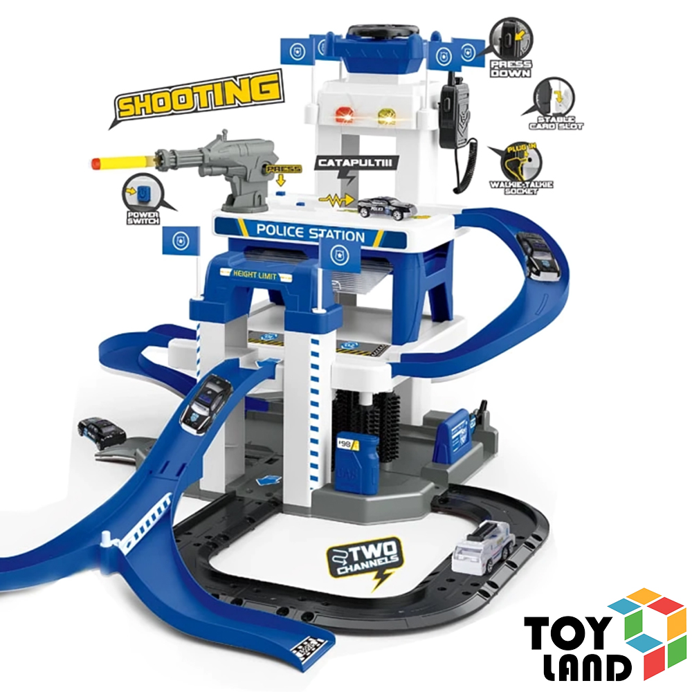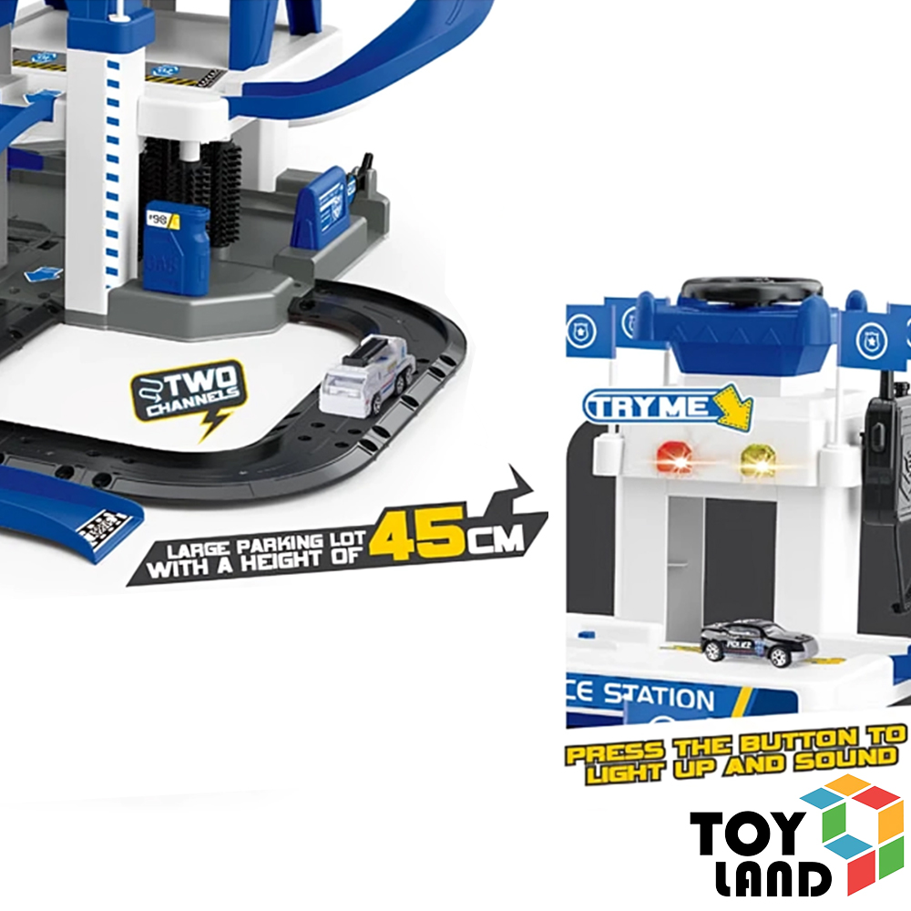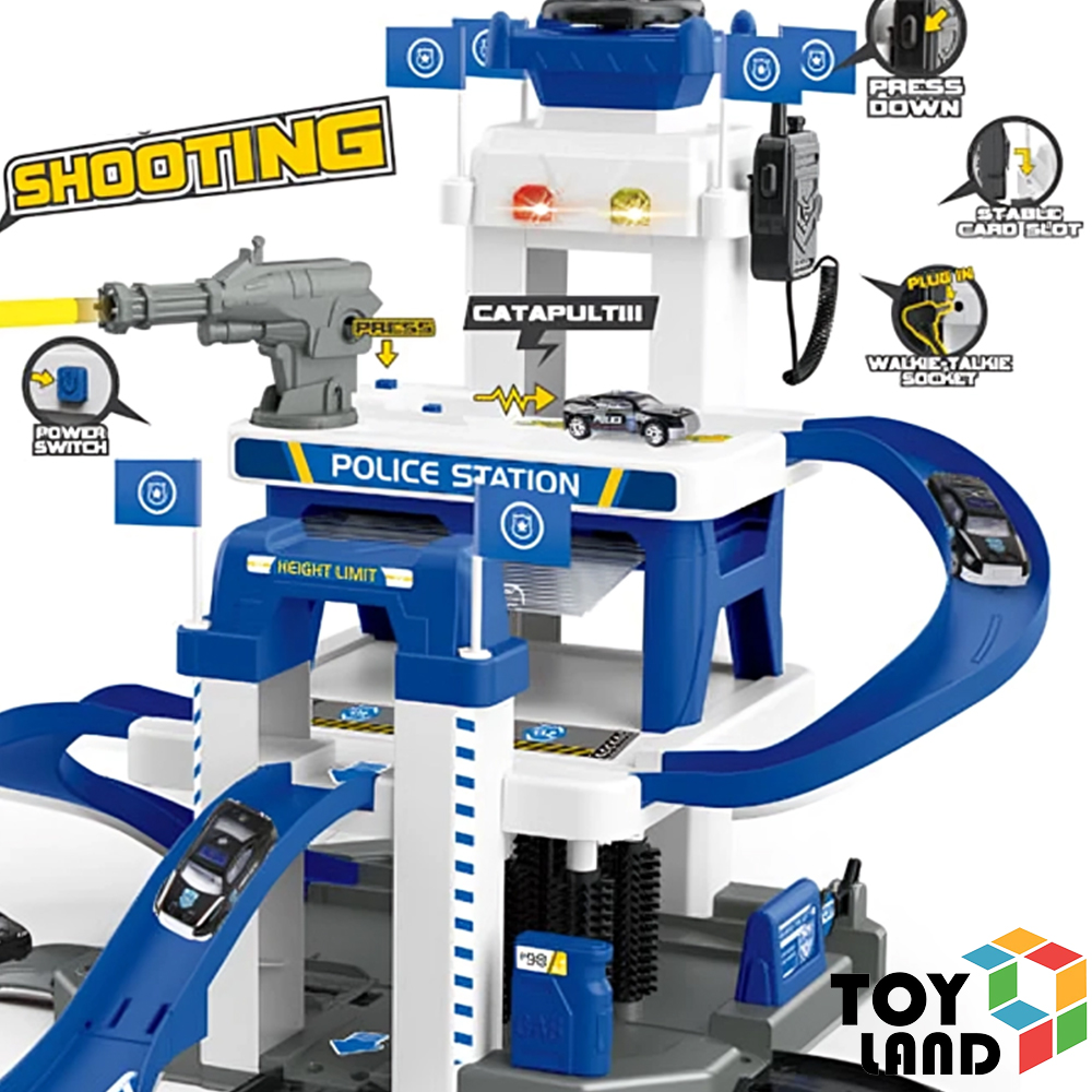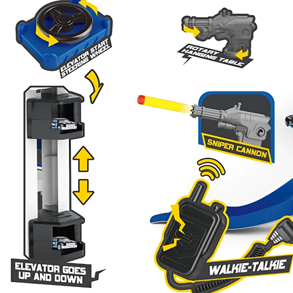 مصعد يدوي مزوّد بأصوات سيارات وصفارات إنذار حقيقية، مع إضاءة ومضخم صوت لاسلكي لواقعية أكبر