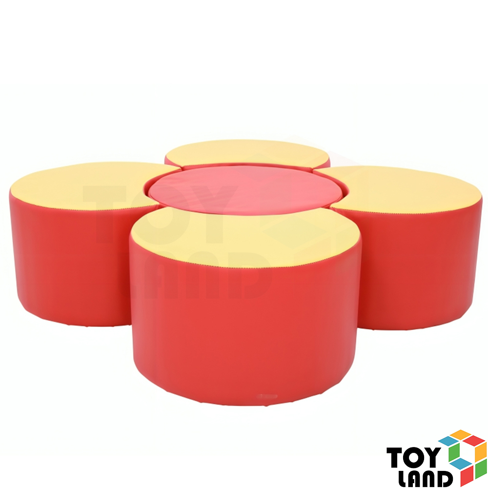 طقم مقاعد سفنجية مع طاولة بتصميم زهرة مبهج، مثالي لغرف اللعب ورياض الأطفال. يوفر راحة وأمان للأطفال أثناء الجلوس أو اللعب، كما يُضفي لمسة جمالية مرحة للمكان.