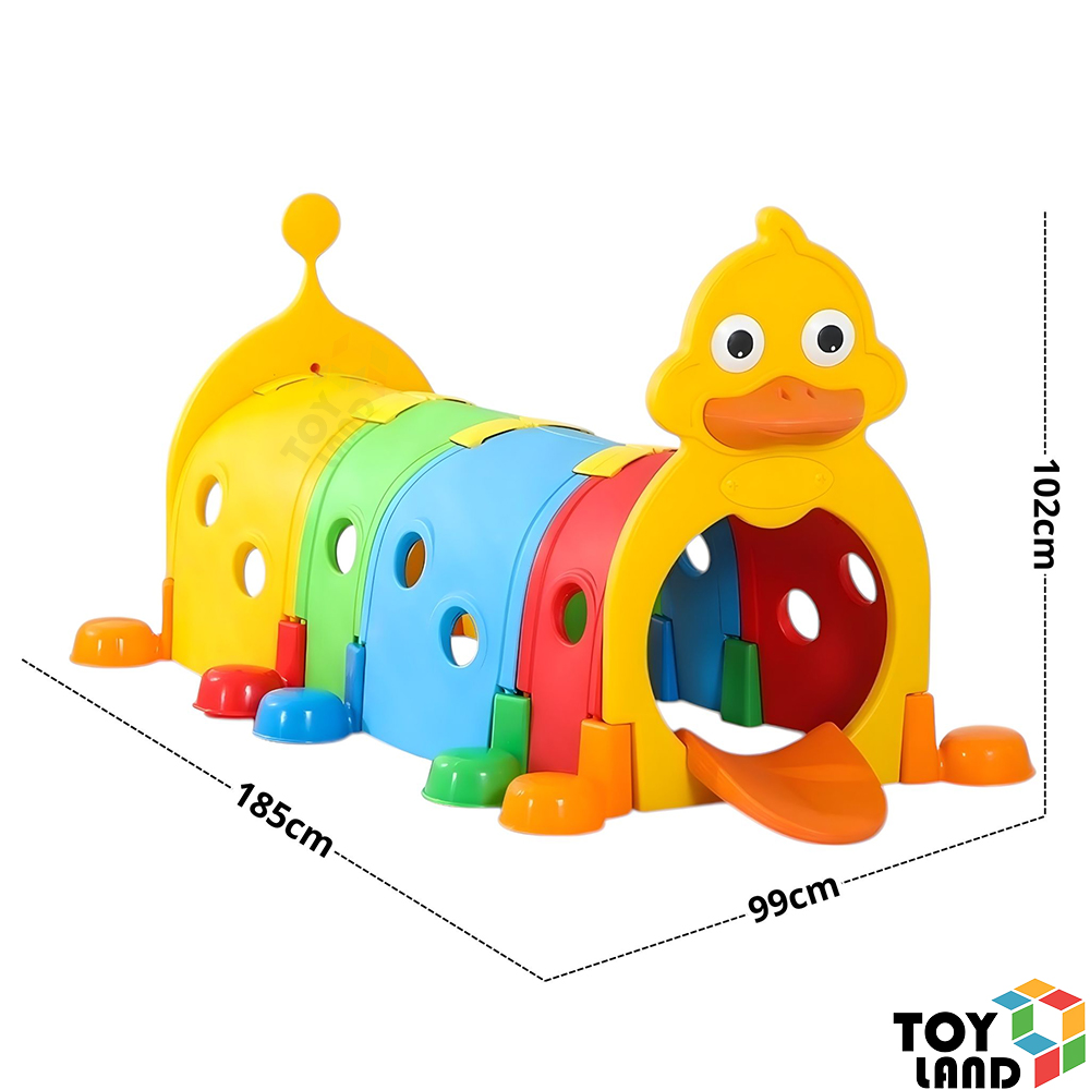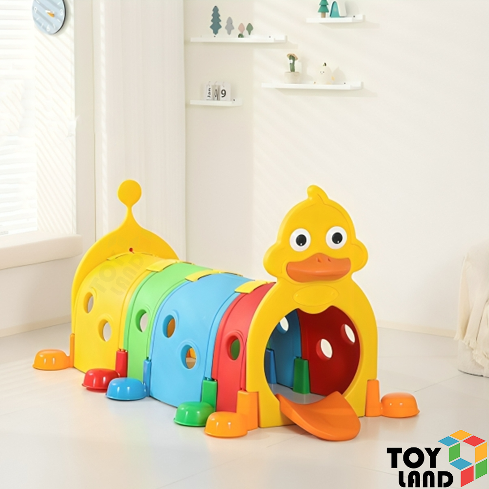نفق ملون على شكل بطة لطيفة، يمنح الأطفال تجربة ممتعة من الزحف، الاختباء، واللعب في بيئة آمنة وشيقة.
