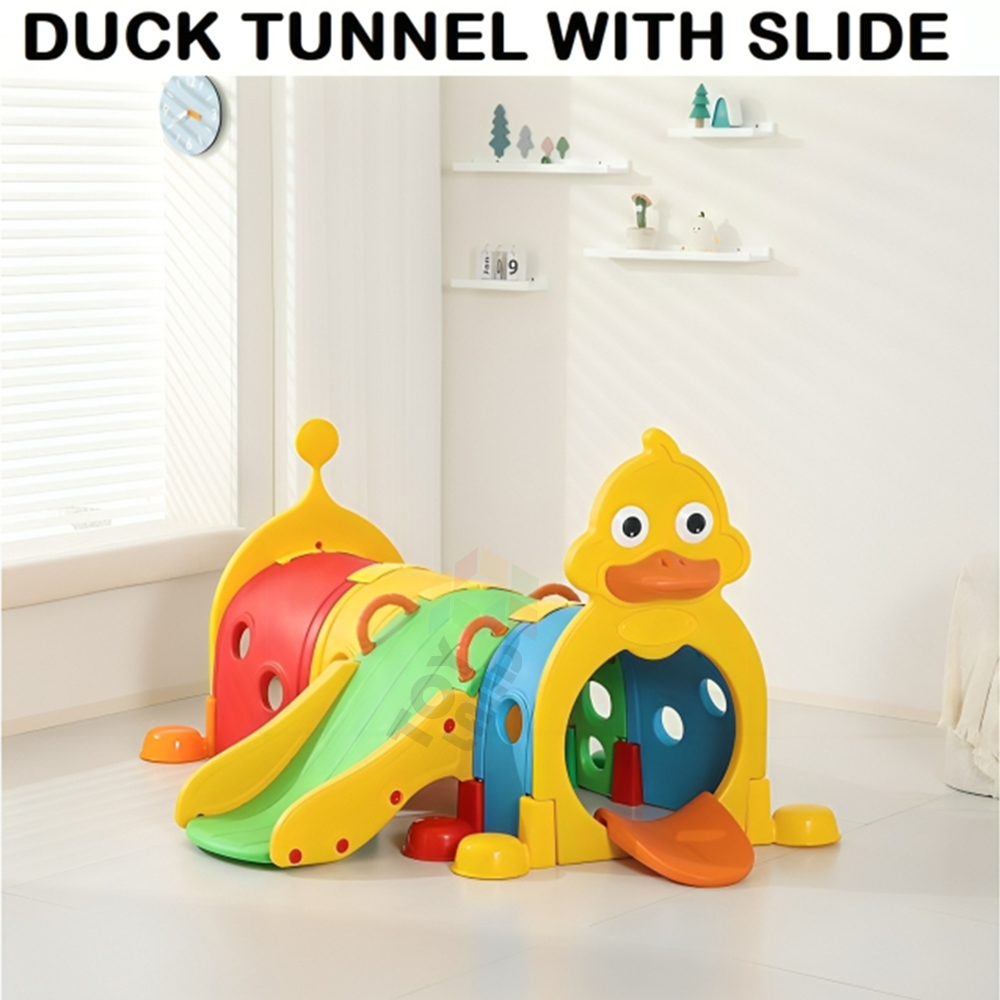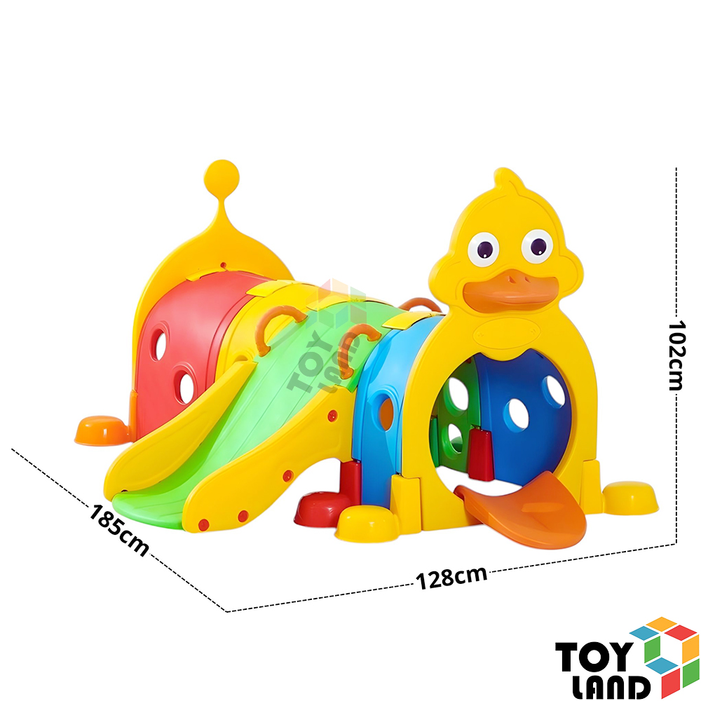 نفق ملون على شكل بطة لطيفة مزود بزحلاقيه، يمنح الأطفال تجربة ممتعة من الزحف، الانزلاق، واللعب في بيئة آمنة وشيقة. مصنوع من مواد قوية وآمنة تناسب الاستخدام في المنازل، الحضانات، ومناطق اللعب، كما يساعد على تنمية المهارات الحركية والقدرات الاجتماعية من خلال اللعب الجماعي. 🎉